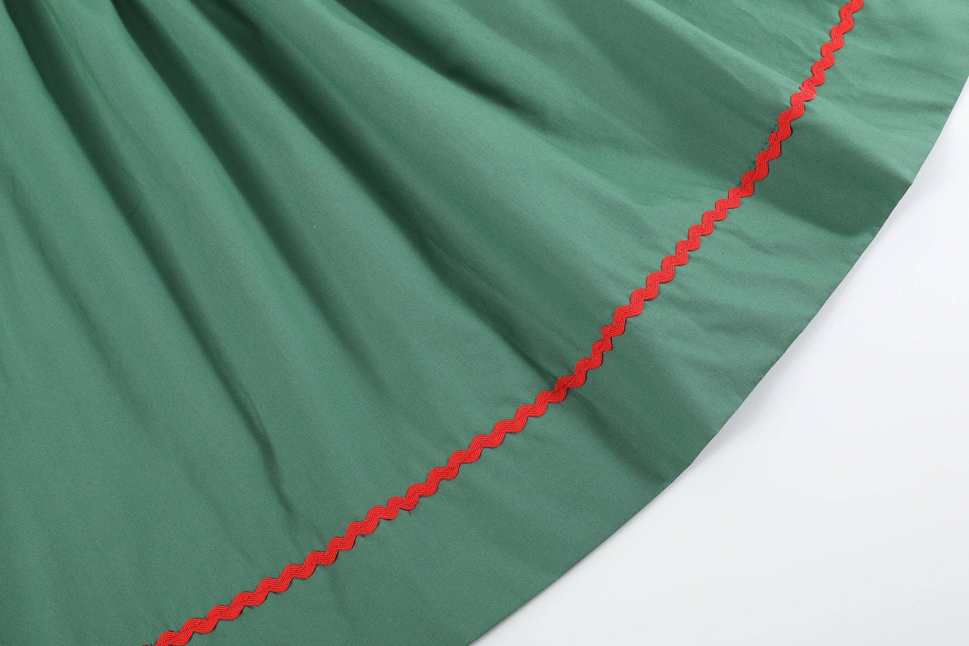 Get your little one into the holiday spirit with this charming Green Christmas Tree Smocked Bishop Dress. Crafted from 100% cotton, it features a smocked neckline adorned with beautifully embroidered Christmas trees detailed with tiny bows. The dress is accented with festive red rickrack trim, adding a touch of seasonal charm. Perfect for Christmas gatherings and celebrations, this dress combines timeless elegance with cozy comfort.